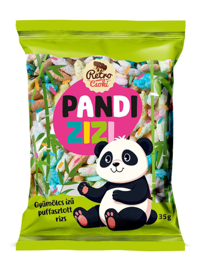 Cukor, puffasztott rizs, glükózszirup, színezékek (karotinok, kurkumin, kárminok, klorofillek és klorofillinek réz-komplexei, szulfitos karamell), savanyúságot szabályozó anyag (citromsav), aromák, étkezési só. Minőségét megőrzi (nap, hónap, év): a csomagoláson jelzett időpontig. Száraz, hűvös helyen tárolandó. Származási ország: EU. Forgalmazza: Retro-Csoki 2008 Kft, 4225 Debrecen, Elek utca 164.