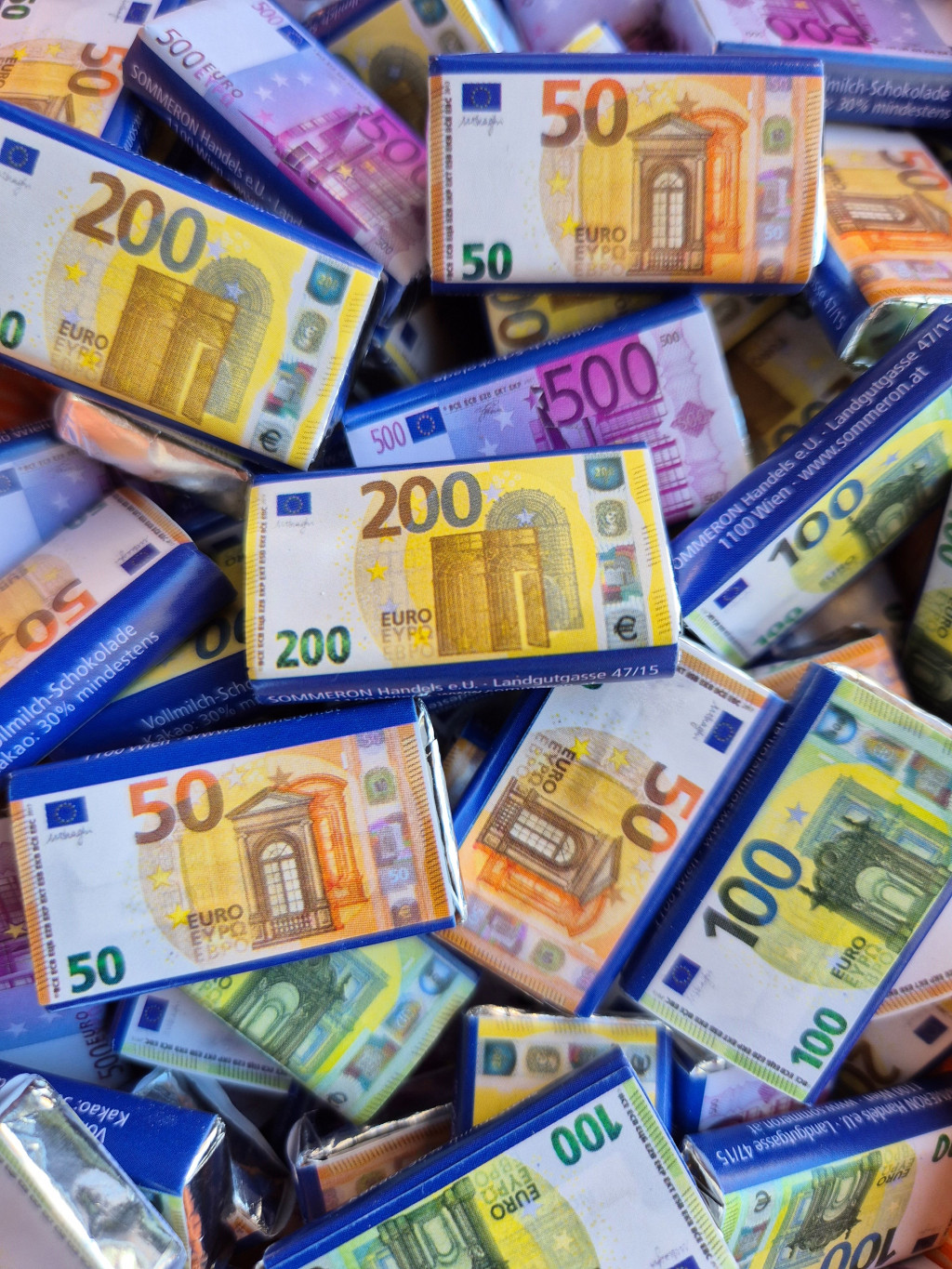 Mini tejcsokoládé többféle Euro címlettel