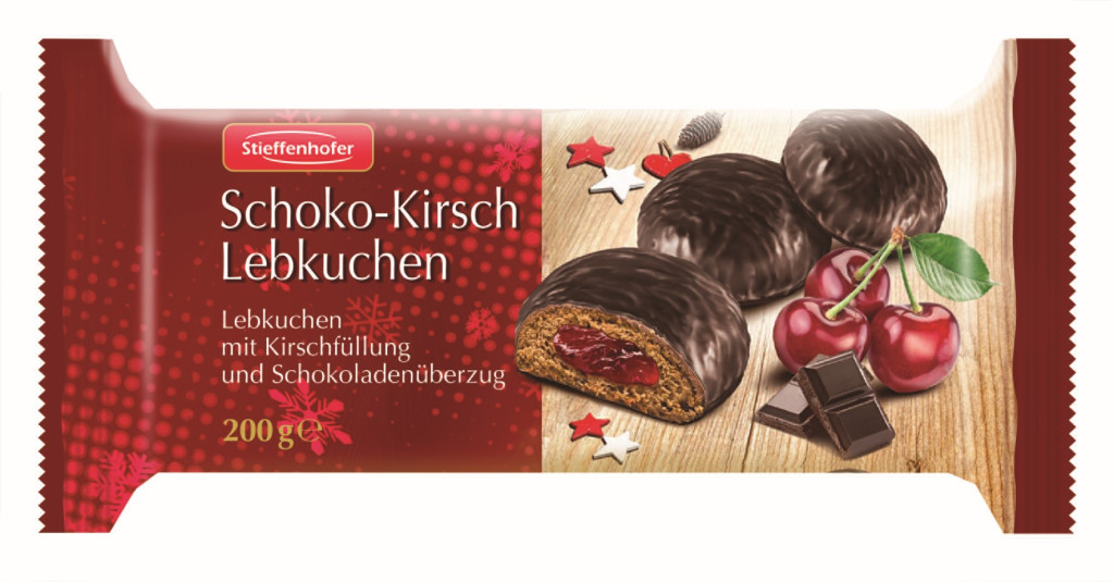 Búzaliszt, glükóz-fruktóz szirup, cseresznyés töltelék (24%) (glükóz-fruktóz szirup, cseresznye (29% a töltelékben) (cukor, cseresznyelé (6% koncentrátumból), módosított keményítő, zselésítőanyag (pektinek, savanyúságot szabályozó anyag (nátrium-citrátok, sav, citromsav), természetes aromák), csokoládé (18%) (cukor, kakaómassza, kakaóvaj, vízmentes tejzsír, emulgeálószer (lecitinek), invert cukorszirup, égetett cukorszirup, térfogatnövelőszer (ammónium-karbonátok), fűszerkeverék (fahéjat tartalmaz), só. Tartalmazhat tojást, földimogyorót, egyéb dióféléket, szóját és szezámmagot. Száraz, hűvös, szagtalan helyen tárolandó. Minőségét megőrzi (nap, hónap, év): a csomagoláson jelzett időpontig. Származási ország: Lengyelország. Forgalmazza: SZ&L Kereskedőház Kft 2085 Pilisvörösvár, Sas utca 4.